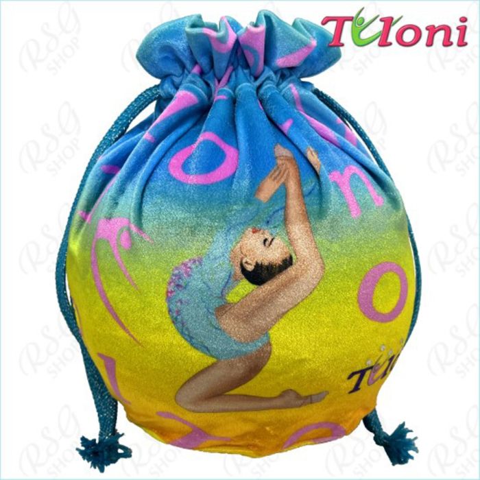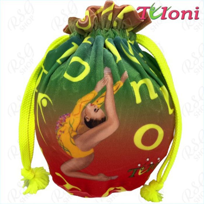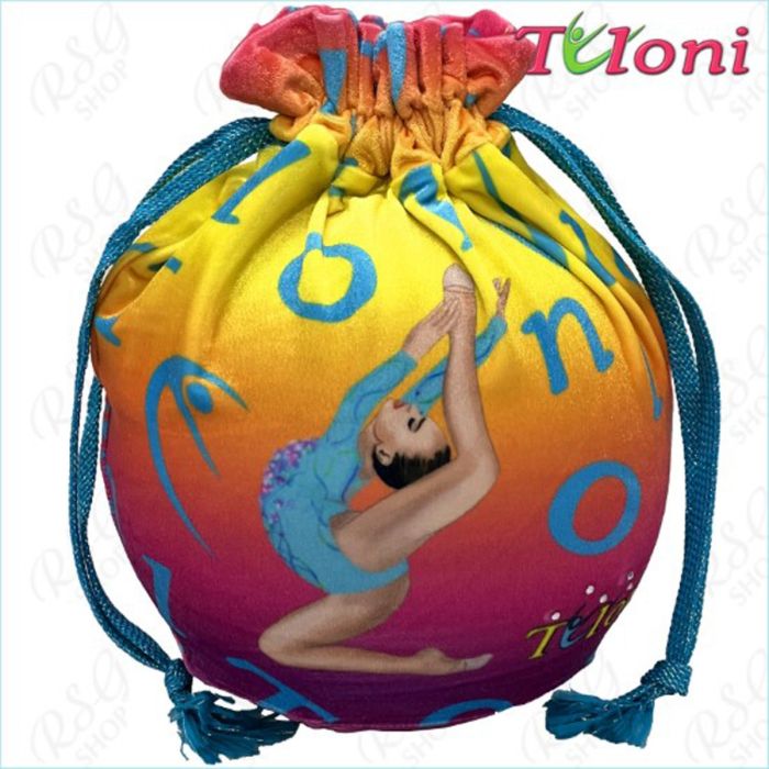 Funda para pelota multicolor de Tuloni. Está hecho de terciopelo de alta calidad, fino y al mismo tiempo firme. La funda para la gimnasia rítmica es muy ligera y cálida. Puede utilizarse en los meses fríos de invierno y no requiere ningún cuidado especial. La funda está decorada con cristales.